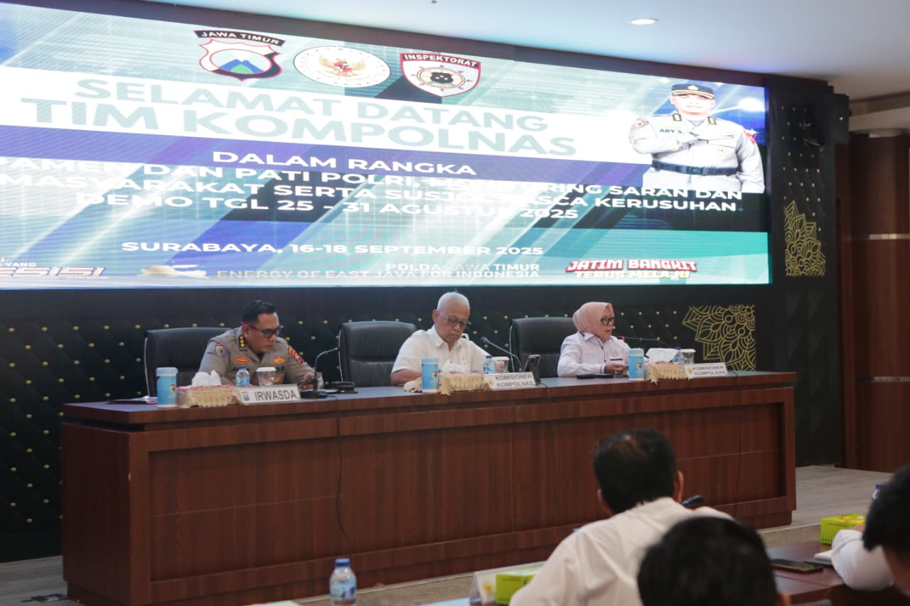 SURABAYA – Tim Komisi Kepolisian Nasional (Kompolnas) melaksanakan monitoring dan evaluasi di Polda Jawa Timur.