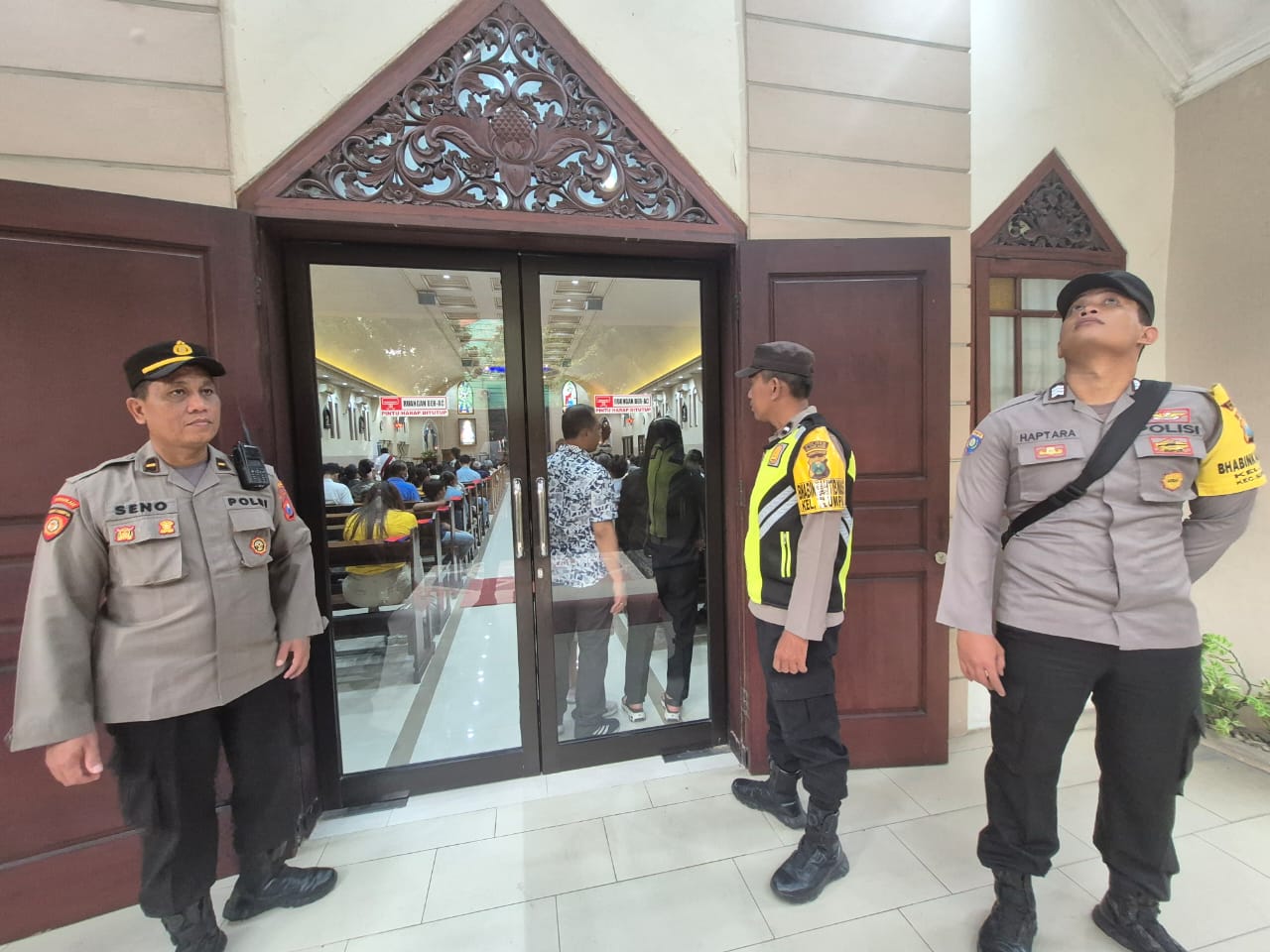 Hadir dalam pelaksanaan Minggu Kasih Panit Binmas Aipda Sudadi bersama Aipda Dian dan Jemaat dari Gereja Santa Maria.