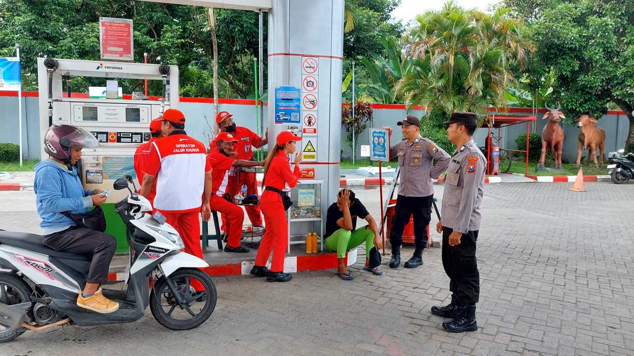 Giat patroli dan pemantauan Objek Vital SPBU yang dilakukan Anggota Polsek Ponggok, guna memastikan keamanan dan kelancaran pelayanan SPBU kepada masyarakat dan mencegah gangguan Kamtibmas, antean panjang saat pengisian BBM bersubsidi