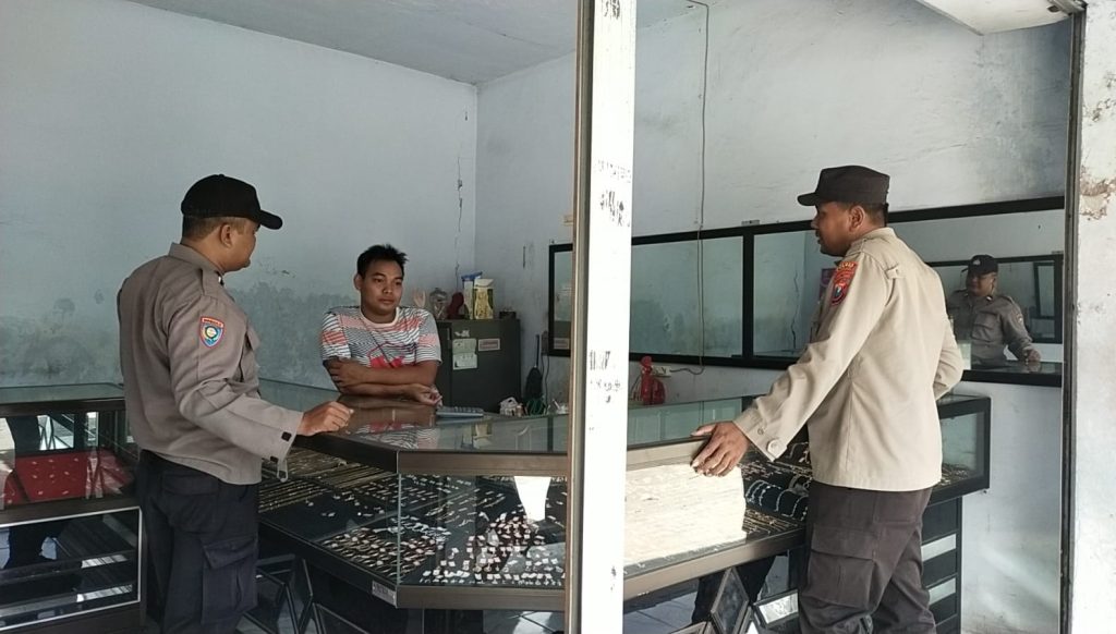 Kamis 08 Mei 2025, anggota patroli Polsek Nglegok melaksanakan patroli dialogis dan himbauan kamtibmas kepada karyawan toko emas dan warga yang bertransaksi emas.