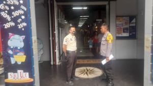 Patroli yang dilakukan Personil Polsek Sukorejo Polres Blitar Kota untuk mencegah tindak kejahatan di pertokoan Graha Bangunan dan toko-toko emas lainnya.