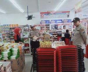 Personil melakukan patroli di minimarket dan bertemu karyawan toko setempat sembari menyampaikan himbauan tentang kewaspadaan terhadap gangguan Kamtibmas.