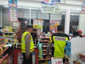 Personil melakukan patroli di minimarket dan bertemu karyawan toko setempat sembari menyampaikan himbauan tentang kewaspadaan terhadap gangguan Kamtibmas.