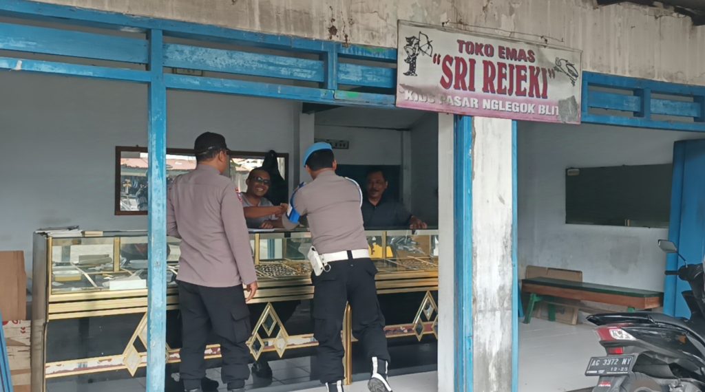 Sabtu, 26 April 2025 anggota Polsek Nglegok yang berpatroli melaksanakan patroli dialogis dan himbauan kamtibmas kepada karyawan toko emas dan warga yang bertransaksi jual beli perhiasan emas.