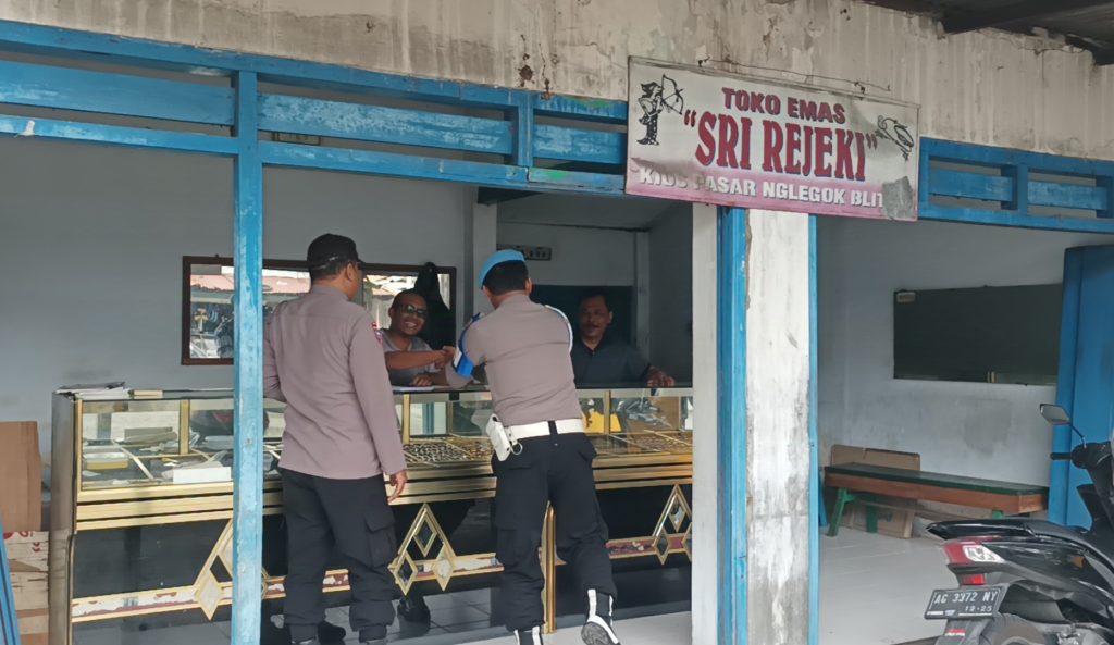 Patroli dialogis Polsek Nglegok dengan warga di toko emas beri himbauan Kamtibmas cegah tindak kriminalitas