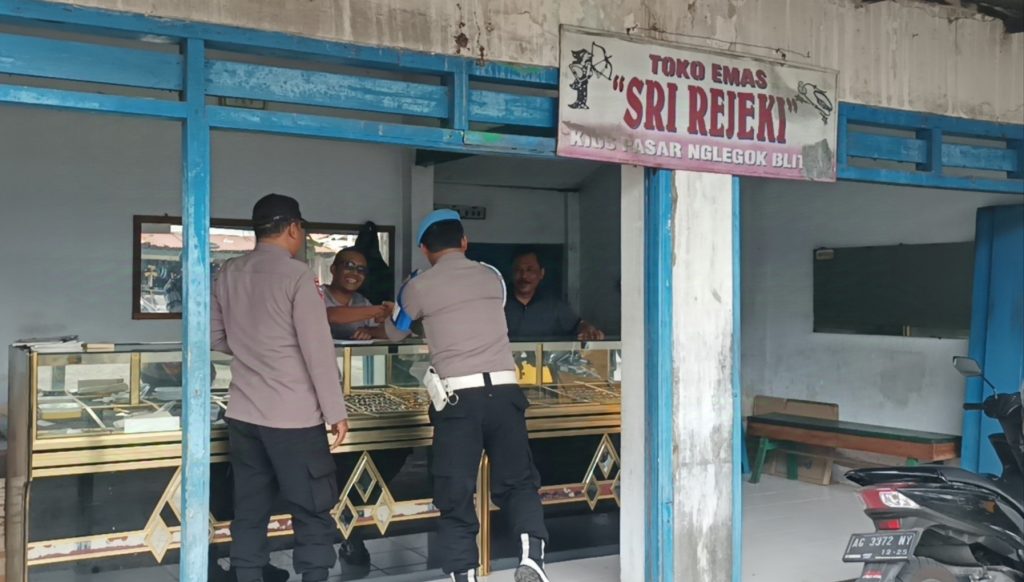 Jum’at 22 Agustus 2025, anggota patroli Polsek Nglegok melaksanakan patroli dialogis dan himbauan kamtibmas kepada karyawan toko emas dan warga yang bertransaksi emas.