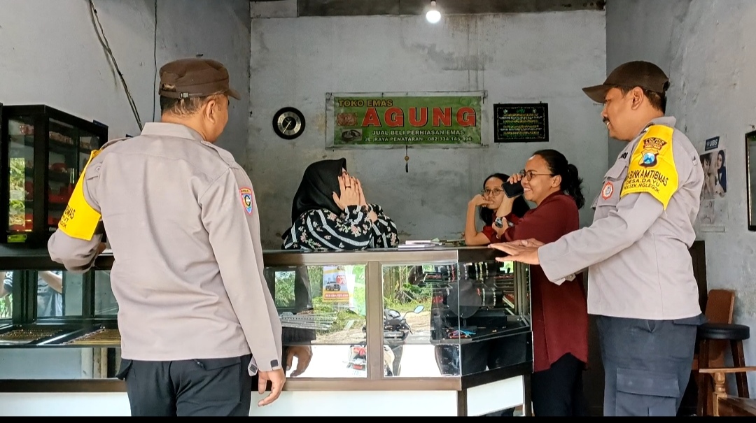 Jum’at 20 Juni 2025, anggota patroli Polsek Nglegok melaksanakan patroli dialogis dan himbauan kamtibmas kepada karyawan toko emas dan warga yang bertransaksi emas.