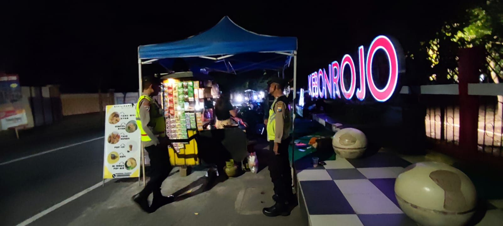 Patroli yang dilaksanakan pada malam hari ini difokuskan pada interaksi langsung dengan para pedagang yang beraktivitas di sekitar area taman. Kehadiran petugas kepolisian di tengah masyarakat tersebut bertujuan untuk memberikan rasa aman sekaligus menyampaikan pesan-pesan kamtibmas secara humanis.