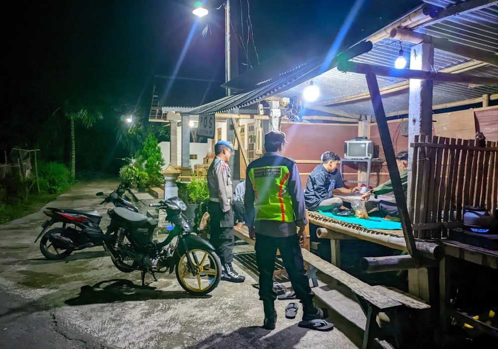 Patroli malam yang dilaksanakan Polsek Nglegok di lingkungan warga berikan himbauan Kamtibmas kepada warga untuk tingkatkan siskamling