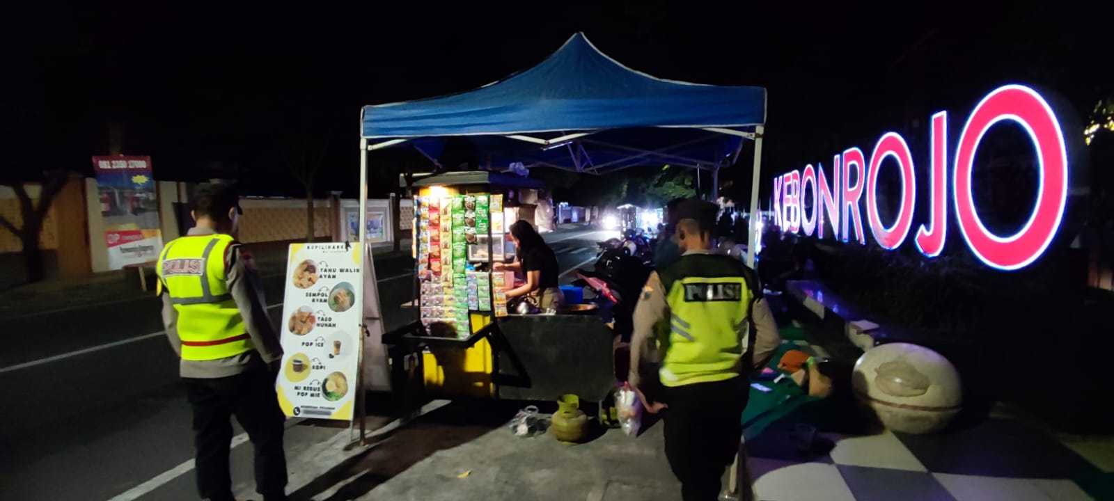 Patroli menyasar kawasan Taman Kebon Rojo yang pada malam hari masih dimanfaatkan masyarakat untuk bersantai dan beraktivitas. Kehadiran anggota kepolisian di lokasi bertujuan untuk memberikan rasa aman dan nyaman bagi masyarakat sekaligus mencegah terjadinya potensi gangguan kamtibmas.
