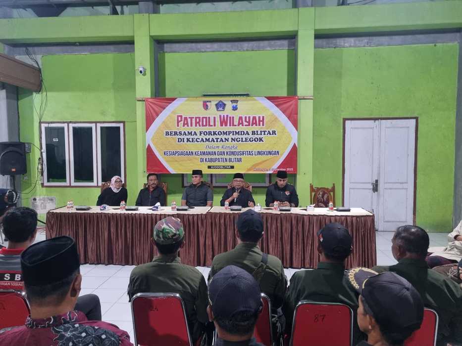 Forkopimda Kabupaten Blitar beserta Kapolres Blitar Kota dan anggota Polsek Nglegok serta Koramil Nglegok melaksanakan patroli dialogis dengan warga (3 September 2025).