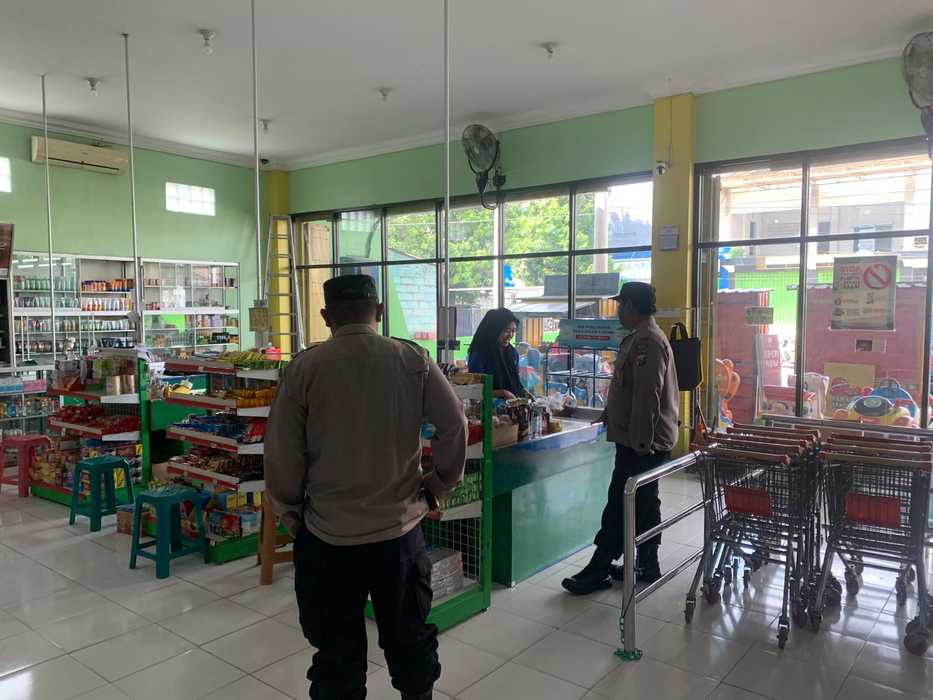 Personil melakukan patroli di minimarket dan bertemu karyawan toko setempat sembari menyampaikan himbauan tentang kewaspadaan terhadap gangguan Kamtibmas.