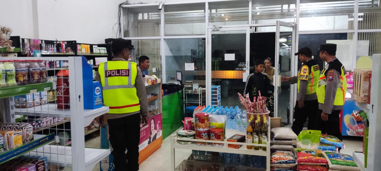 Kegiatan patroli dilakukan dengan menyisir area sekitar mini market, memantau kondisi lingkungan, serta memastikan keamanan tempat usaha yang masih beroperasi hingga malam hari. Dalam kegiatan tersebut, petugas juga melakukan pengecekan terhadap sistem keamanan yang dimiliki oleh mini market, termasuk memastikan kamera CCTV berfungsi dengan baik sebagai alat bantu pengawasan.