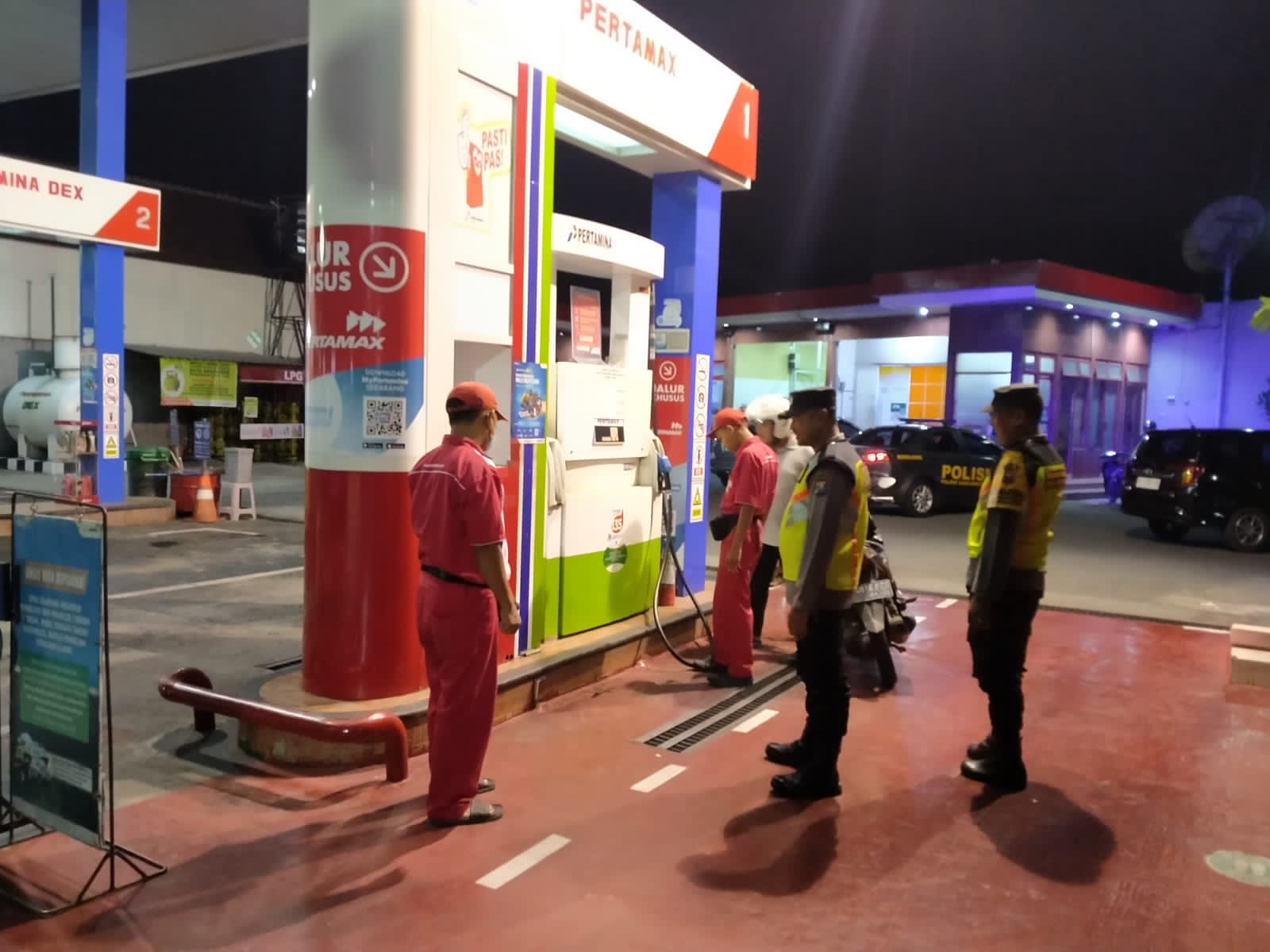 Selain melakukan pemantauan situasi, anggota patroli juga menyempatkan diri berdialog dengan petugas SPBU yang sedang bertugas. Dalam kesempatan tersebut, petugas kepolisian menyampaikan himbauan kamtibmas serta mengingatkan agar para petugas SPBU selalu meningkatkan kewaspadaan saat melayani masyarakat, terutama pada malam hari.