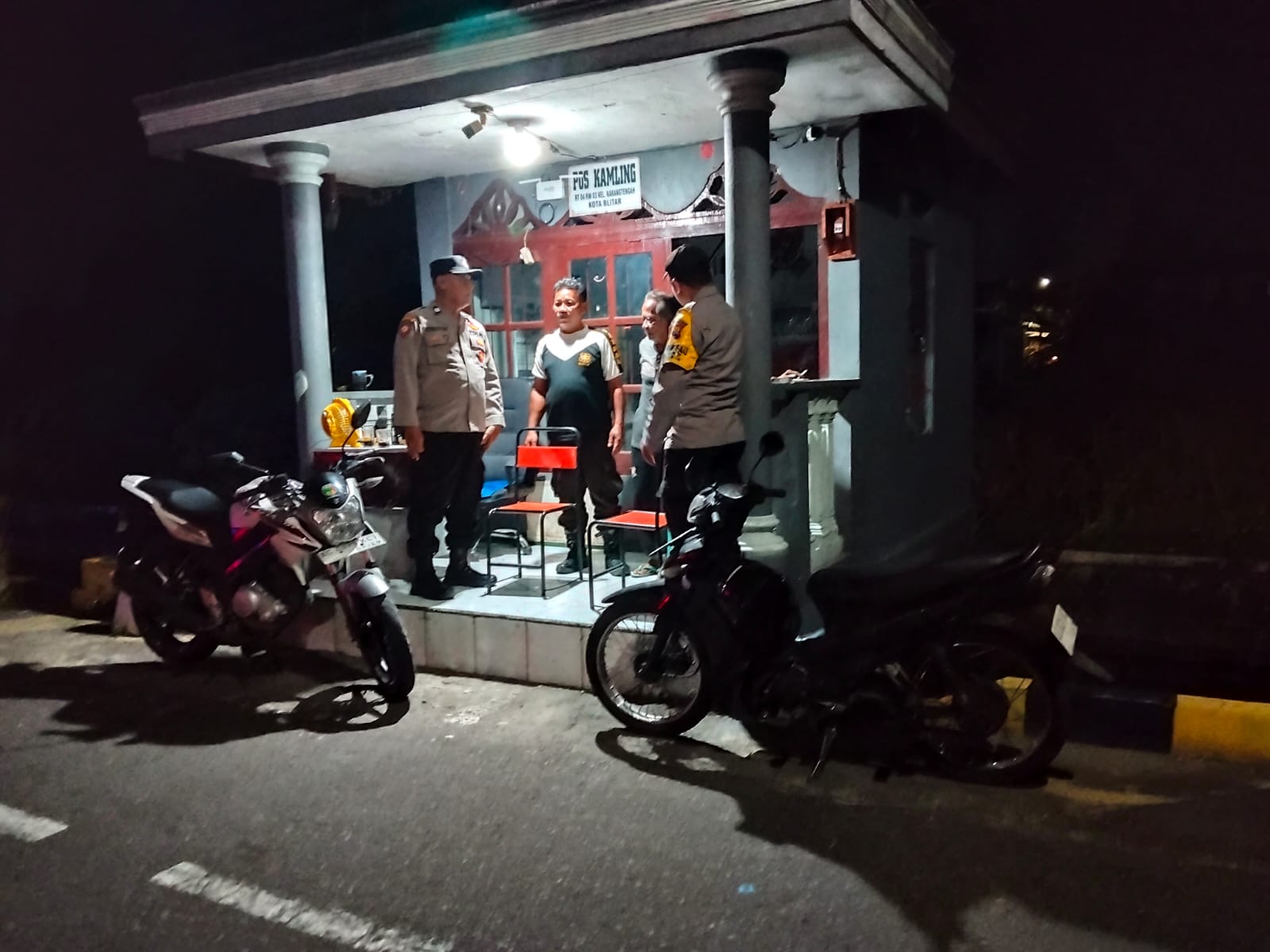 Blitar – Dalam rangka menjaga situasi keamanan dan ketertiban masyarakat (harkamtibmas), anggota Polsek Sananwetan melaksanakan patroli malam dengan menyambangi pos kamling di wilayah RT 4 RW 3 Kelurahan Karangtengah, Kecamatan Sananwetan, Kota Blitar, pada Rabu malam, 25 Maret 2026 pukul 22.30 WIB.