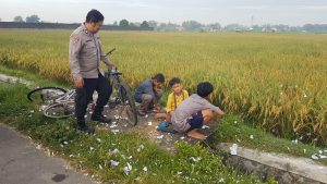 Dalam kegiatan tersebut, petugas menyusuri area persawahan serta berinteraksi dengan warga yang sedang beraktivitas, sekaligus menyampaikan imbauan kamtibmas agar masyarakat tetap waspada terhadap lingkungan sekitar. Kehadiran polisi di tengah masyarakat diharapkan mampu memberikan rasa aman dan mencegah niat pelaku kejahatan.