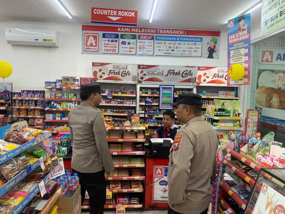 Personil melakukan patroli di minimarket dan bertemu karyawan toko setempat sembari menyampaikan himbauan tentang kewaspadaan terhadap gangguan Kamtibmas.