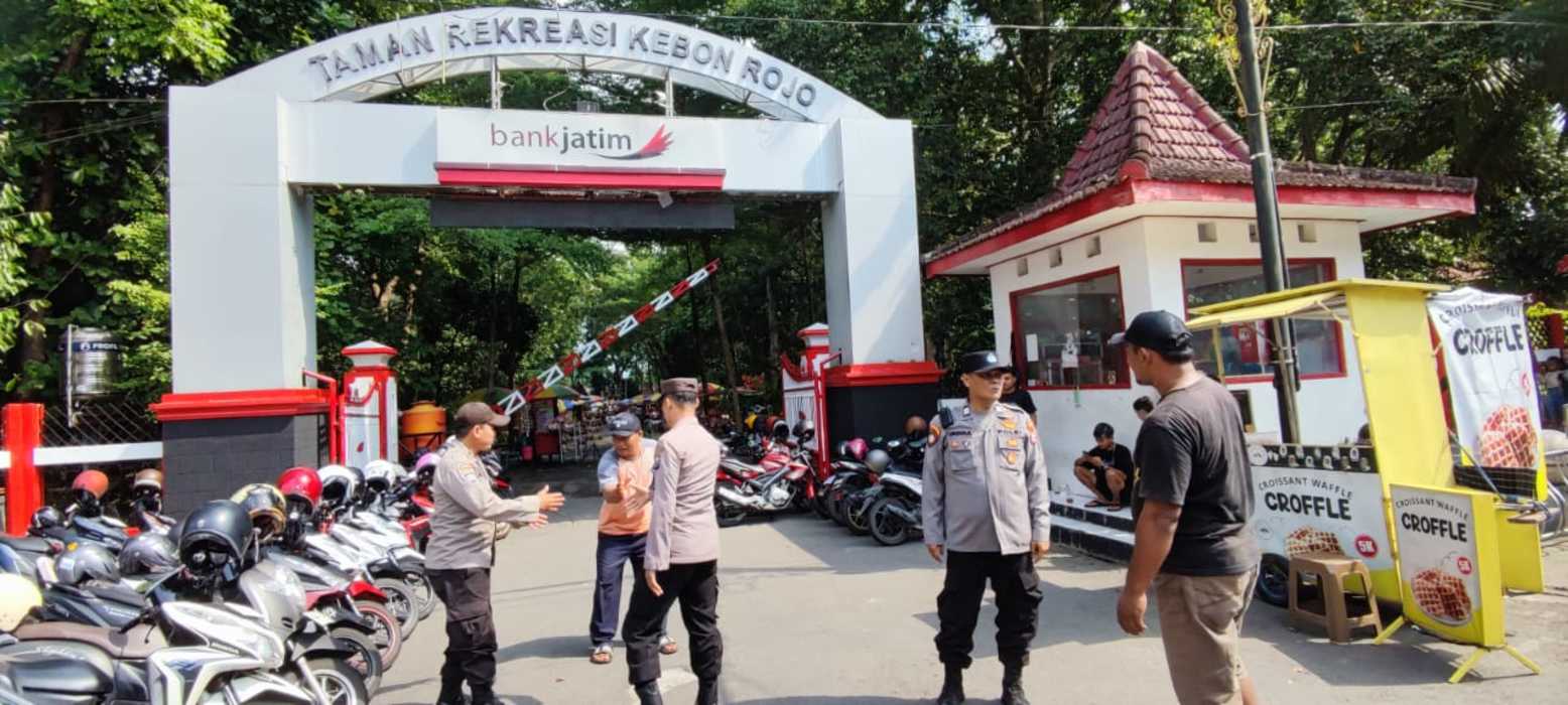 Dalam kegiatan patroli tersebut, petugas menyusuri setiap sudut area taman wisata Kebon Rojo yang pada akhir pekan ramai dikunjungi masyarakat untuk berlibur bersama keluarga. Petugas memantau situasi sekitar, sekaligus berdialog dengan sejumlah pengunjung serta pihak pengelola untuk memberikan imbauan kamtibmas.