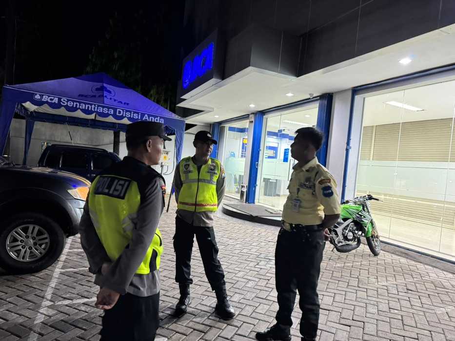 Patroli yang dilakukan secara dialogis ini menyasar sejumlah titik objek vital, khususnya perbankan yang masih memiliki aktivitas pengamanan internal. Dalam kegiatan tersebut, petugas melakukan koordinasi langsung dengan petugas keamanan (satpam) guna mengantisipasi potensi gangguan keamanan di jam-jam rawan.