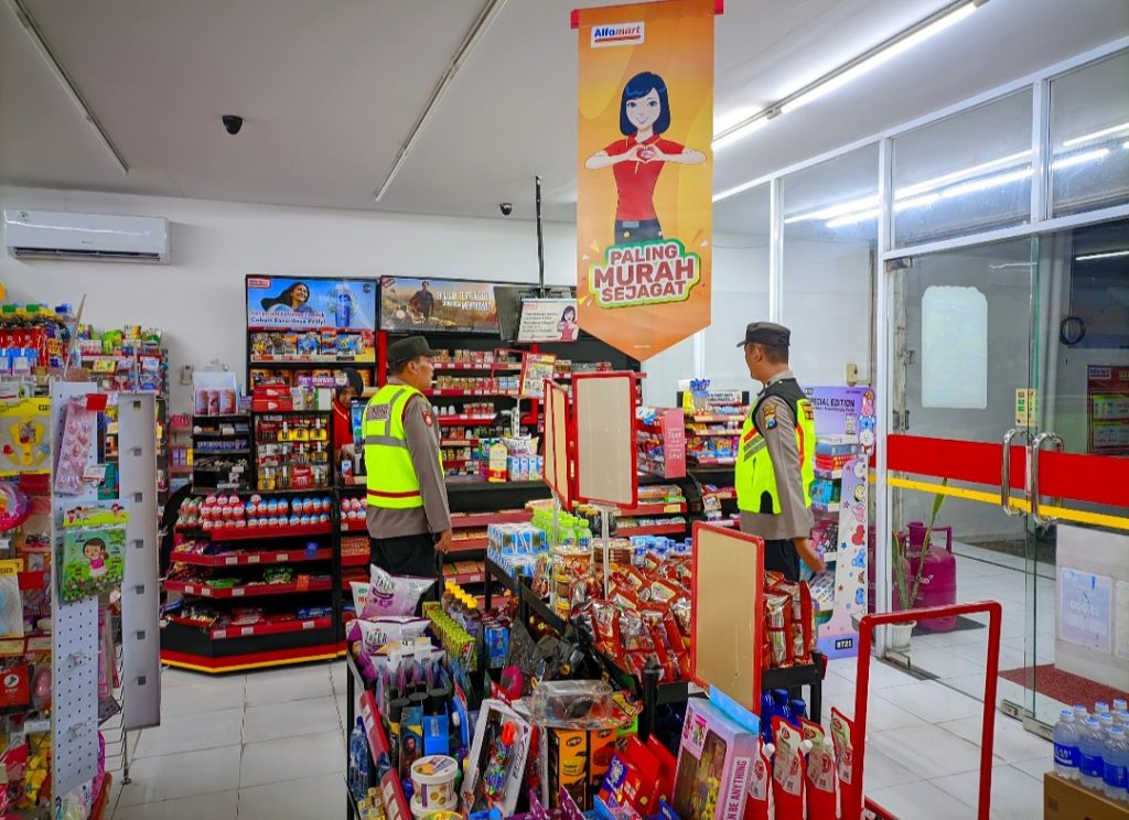 Anggota Polsek Nglegok melaksanakan patroli dan mendatangi salah satu minimarket yang lumayan ramai pembeli. (28 Januari 2026)