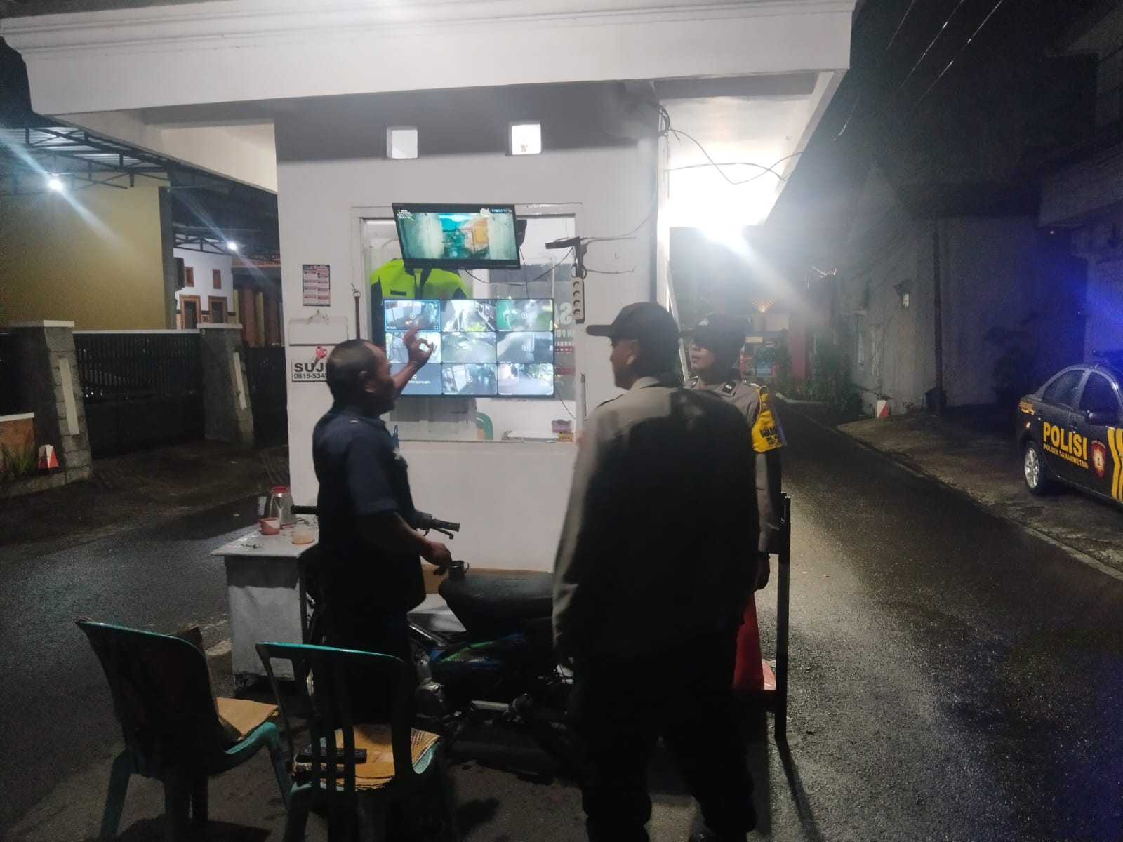 Dalam pelaksanaannya, petugas patroli menyambangi pos satpam yang berada di area perumahan untuk melakukan koordinasi serta memastikan situasi lingkungan dalam keadaan aman dan kondusif. Petugas juga melakukan pengecekan terhadap CCTV yang terpasang di beberapa sudut perumahan guna memastikan perangkat keamanan berfungsi dengan baik dan dapat membantu memantau aktivitas di sekitar lingkungan.