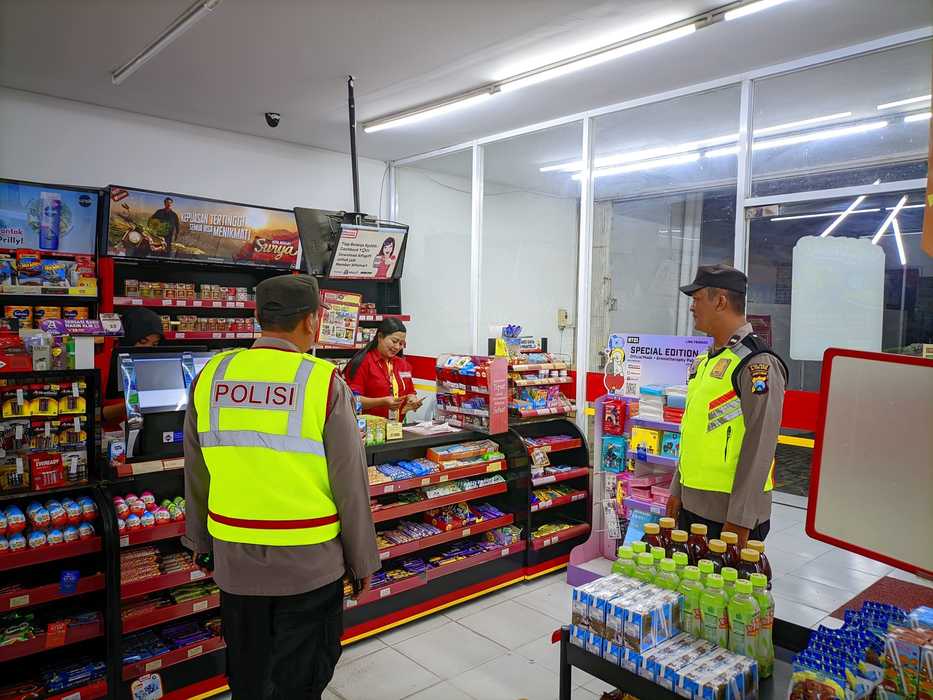 Anggota Polsek Nglegok melaksanakan patroli dan mendatangi salah satu minimarket yang lumayan ramai pembeli. (27 April 2025)