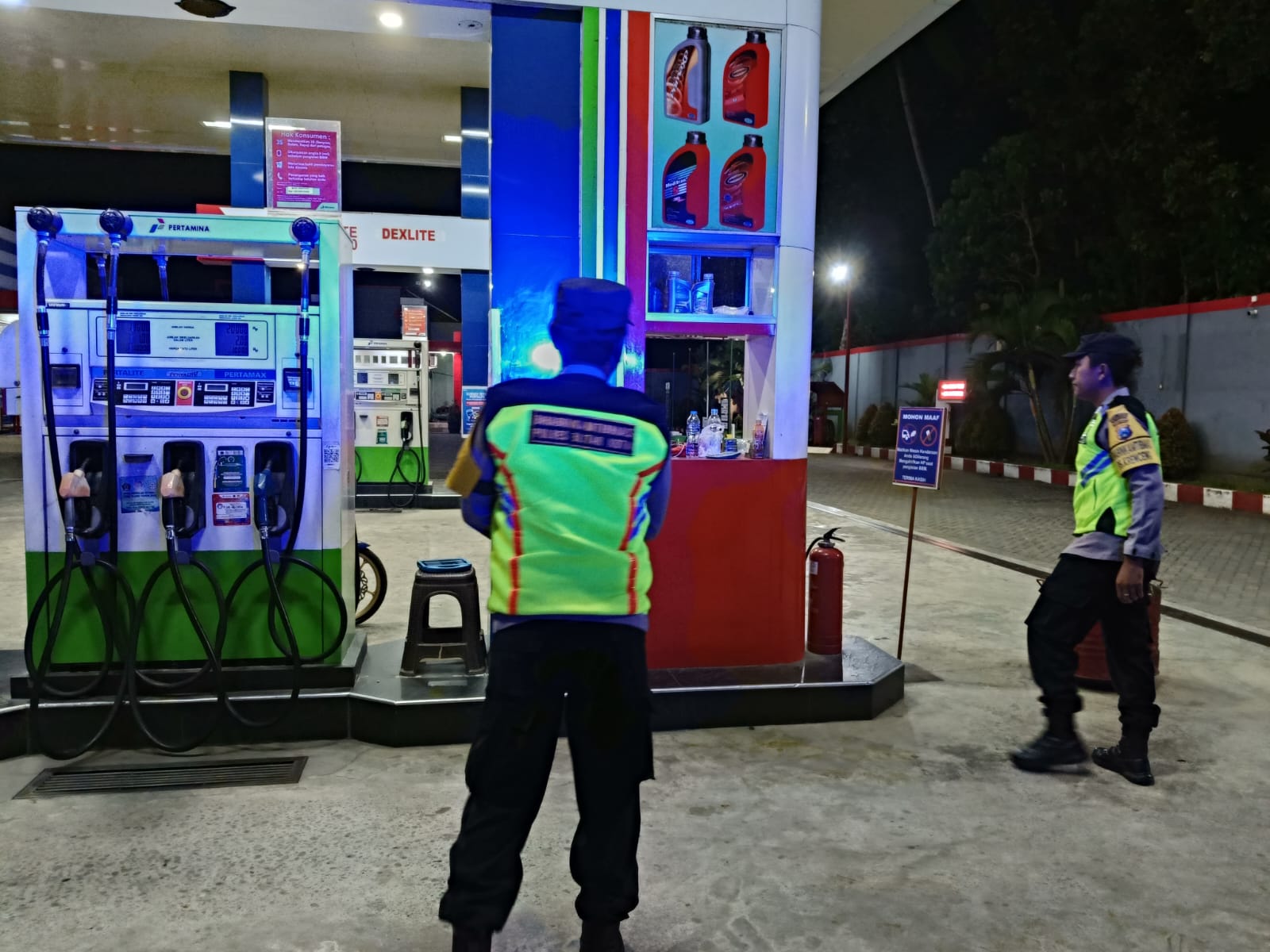 Salah satu yang dilaksanakan oleh anggota Polsek Nglegok dalam hal menanggulangi gangguan kamtibmas adalah melaksanakan patroli malam dan himbauan kamtibmas kepada warga. Terutama di obyek vital yang buka hingga larut malam. (25 November 2025)