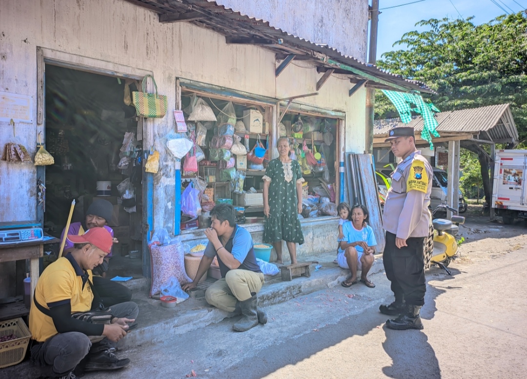 Anggota patroli Polsek Nglegok berhenti di toko yang terletak di pasar Nglegok. Semakin banyaknya warga yang melakukan trnsaksi keuangan, juga menjadi celah akan terjadinya kerawanan tindak kejahatan. Salah satunya adalah penjambretan dan perampasan.