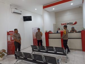 Kegiatan patroli siang ini dilaksanakan oleh Aipda Jauhari bersama Brigadir Gatot dan Briptu Alfian dengan melaksanakan dialogis dengan petugas Satpam dan nasabah bank Jatim unit Ponggok, Jumat (19/01/2024).