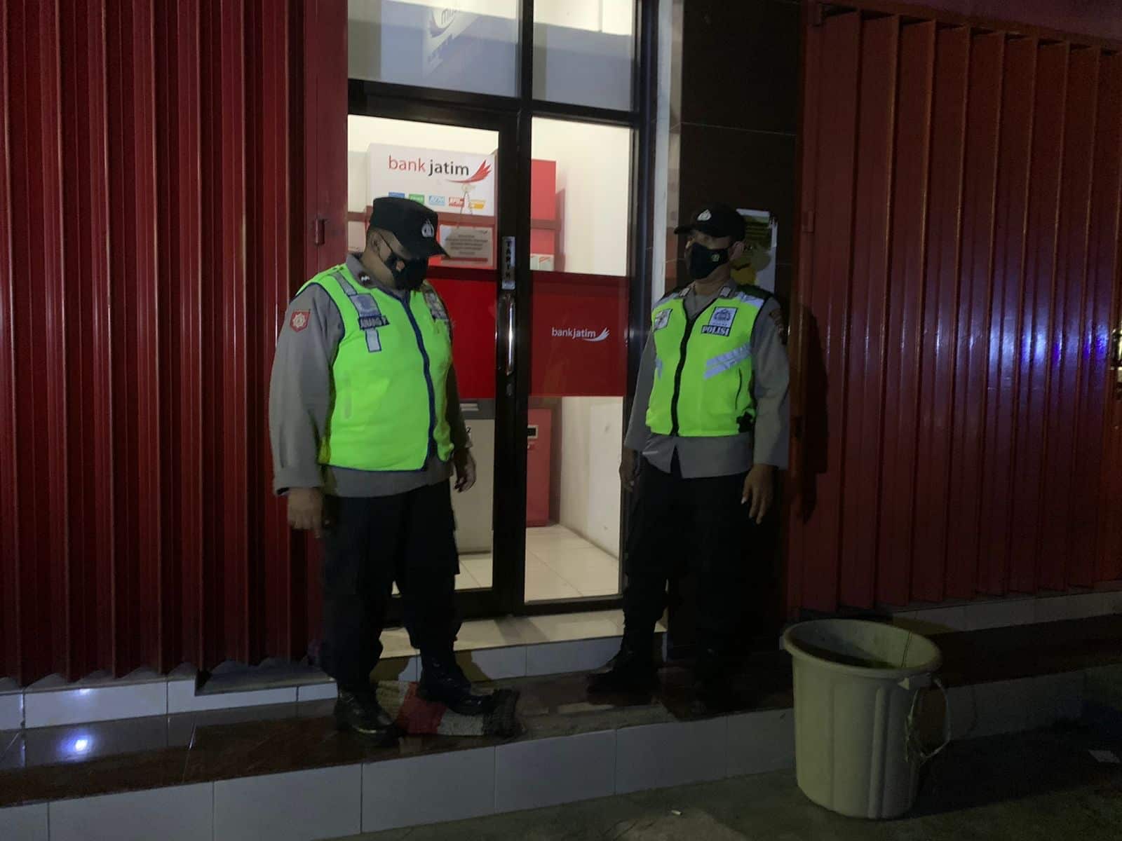 Dalam kegiatan ini, Petugas patroli menyambangi kantor Bank Bri dan Bank Jatim yang juga terdapat gerai mesin ATM untuk menyampaikan pesan kamtibmas dan juga selalu mengingatkan agar satuan pengamanan selalu waspada dan berhati hati saat bertugas apalagi saat malam hari juga berperan aktif dalam memberikan edukasi kepada masyarakat agar menerapkan protokol kesehatan kepada nasabah yang datang untuk bertransaksi melalui mesin ATM.