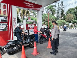 Petugas memberikan himbauan kamtibmas kepada masyarakat yang sedang mengisi bahan bakar agar selalu waspada terhadap lingkungan sekitar, menjaga barang bawaan, serta menghindari tindakan yang dapat memicu tindak kejahatan. Selain itu, petugas juga mengingatkan pentingnya kewaspadaan terhadap potensi kejahatan seperti pencurian, penipuan, maupun aksi kriminal lainnya.