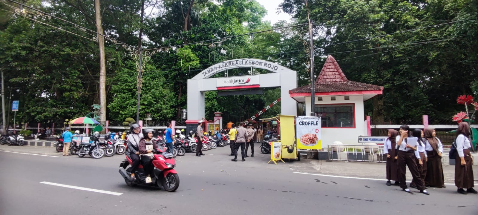 Taman Wisata Kebon Rojo merupakan salah satu ruang publik favorit warga untuk berolahraga, berekreasi, dan berkumpul bersama keluarga. Pada akhir pekan, tempat ini kerap dipadati pengunjung dari berbagai kalangan sehingga memerlukan perhatian lebih dalam menjaga kondisi keamanan dan ketertiban. Menyikapi hal tersebut, Polsek Sananwetan secara konsisten menerjunkan personel piket untuk melakukan monitoring dan memastikan area tetap aman serta kondusif.
