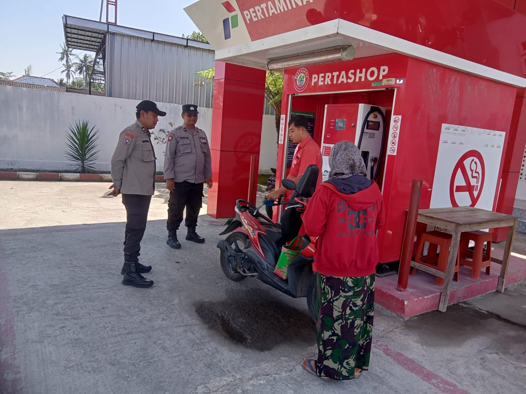 Patroli Polsek Nglegok berikan himbauan Kamtibmas kepada warga di obyek vital SPBU yang ramai pembeli
