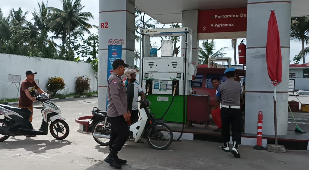 Selasa 16 September 2025, Anggota Polsek Nglegok melaksanakan silaturahmi kamtibmas dan melaksanakan patroli dialogis dengan karyawan dan warga yang membeli BBM di SPBU Jiwut.
