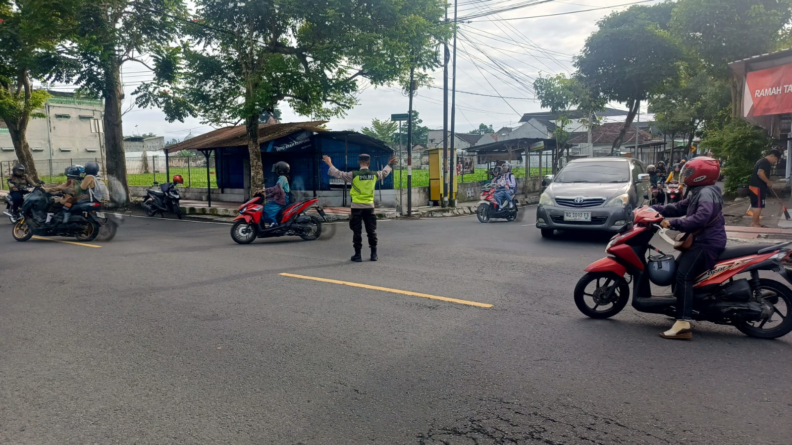 Selain pengaturan lalu lintas, petugas juga melakukan pemantauan situasi sekitar guna mencegah terjadinya kecelakaan maupun gangguan kamtibmas lainnya. Dengan pendekatan humanis, anggota Polsek Sananwetan turut mengingatkan pengendara untuk menggunakan helm, sabuk pengaman, serta tidak menggunakan ponsel saat berkendara.