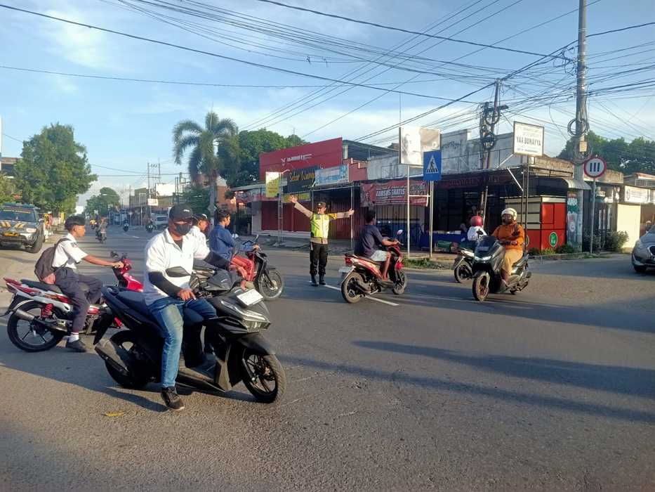 Polres Blitar Kota – Setiap pagi hari anggota Polsek Srengat Polres Blitar Kota selalu hadir di tengah – tengah masyarakat yang membutuhkan pelayanan masyarakat terutama pengguna jalan.Anggota Polsek Srengat melaksanakan kegiatan pengaturan arus lalu lintas baik di depan sekolah maupun di simpul – simpul jalan. Senin, 28/04/2025.