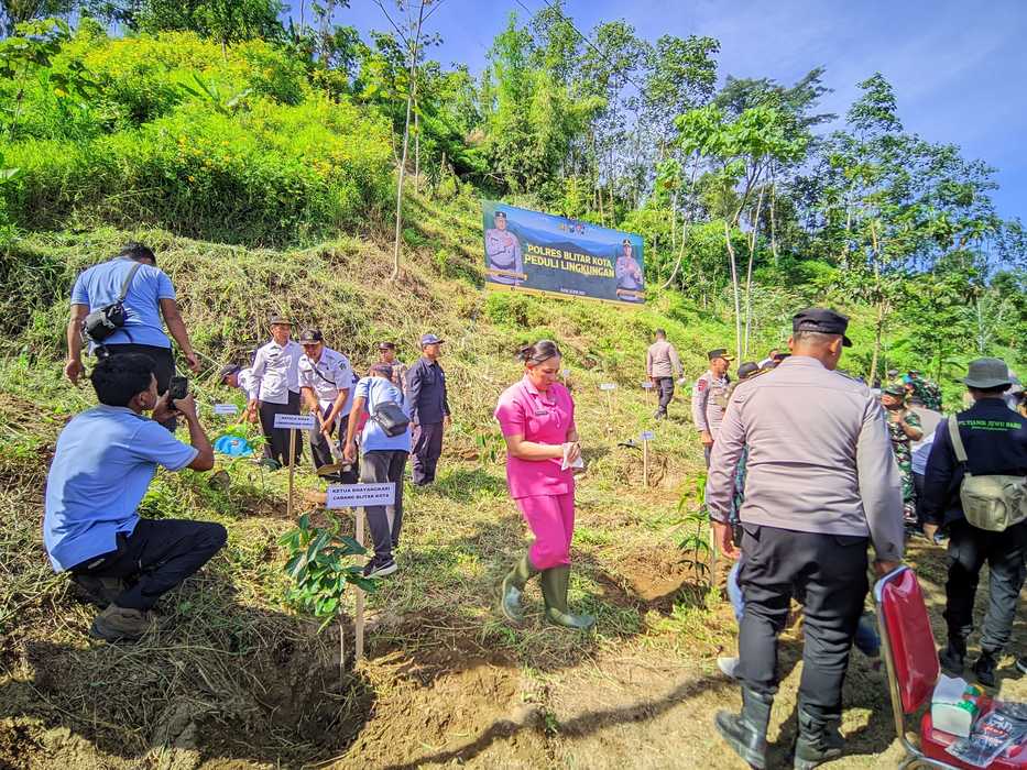 Polres Blitar Kota melaksanakan program penanaman 1000 pohon di sekitar aliran Kali Bladak. Kegiatan ini bekerjasama dengan forkopimcam kecamatan Nglegok dan Polsek Nglegok.