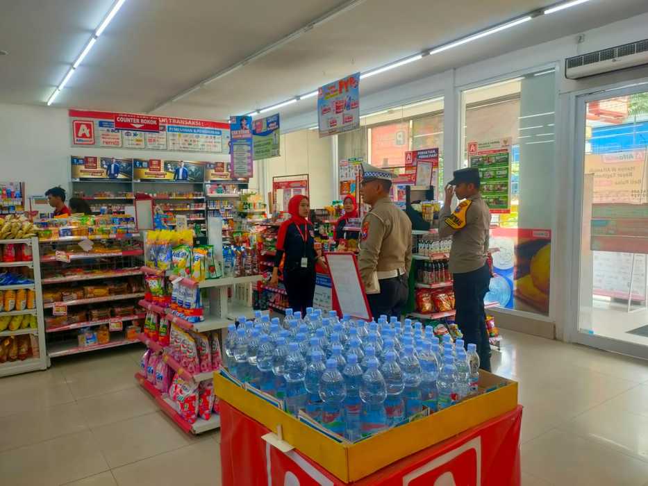 Personil melakukan patroli di minimarket dan bertemu karyawan toko setempat sembari menyampaikan himbauan tentang kewaspadaan terhadap gangguan Kamtibmas.