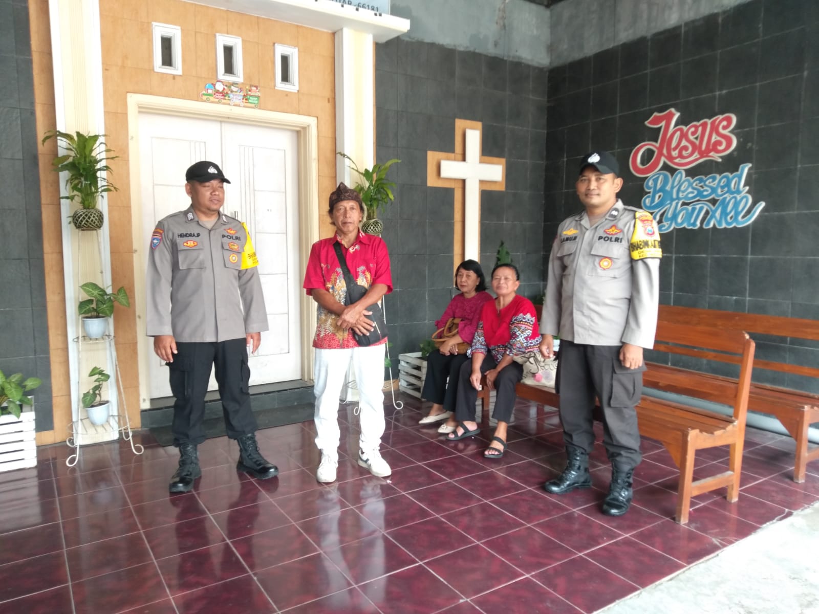 Anggota Polsek Nglegok memberikan himbauan kepada jemaat gereja agar tetap mentaati Kamtibmas dan menjaga kerukunan antar umat beragama. Agar terciptak Kamtibmas di lingkungan yang aman dan kondusif. (05 April 2026)