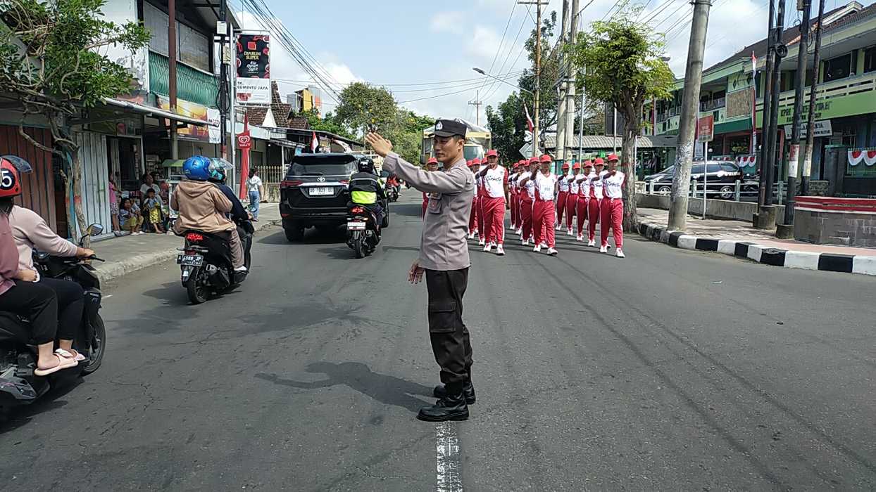 Polsek Sananwetan Polres Blitar kota Melaksanakan kegiatan pengamanan dan pengaturan arus lalu lintas dalam kegiatan Lomba Baris Berbaris Tingkat Instansi Se-Kota Blitar dalam Rangka Peringatan HUT ke – 78 kemerdekaan Republik Indonesia pada hari Senin (07/08/2023) Pagi