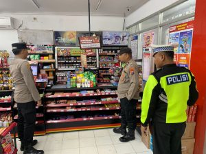 Personil melakukan patroli di minimarket dan bertemu karyawan toko setempat sembari menyampaikan himbauan tentang kewaspadaan terhadap gangguan Kamtibmas.