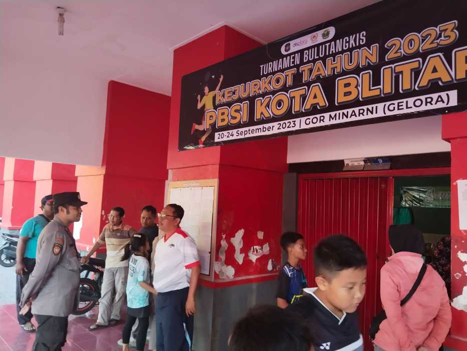 Polsek Sananwetan Polres Blitar kota Melaksanakan kegiatan Pengamanan turnamen bulu tangkis Kejurkot Tahun 2023 Pbsi Kota Blitar bertempat di GOR Minarni (Gelora) Jln. Kebon Rakyat Kelurahan Bendogerit Kecamatan Sananwetan Kota Blitar pada hari Kamis (21/09/2023) Siang