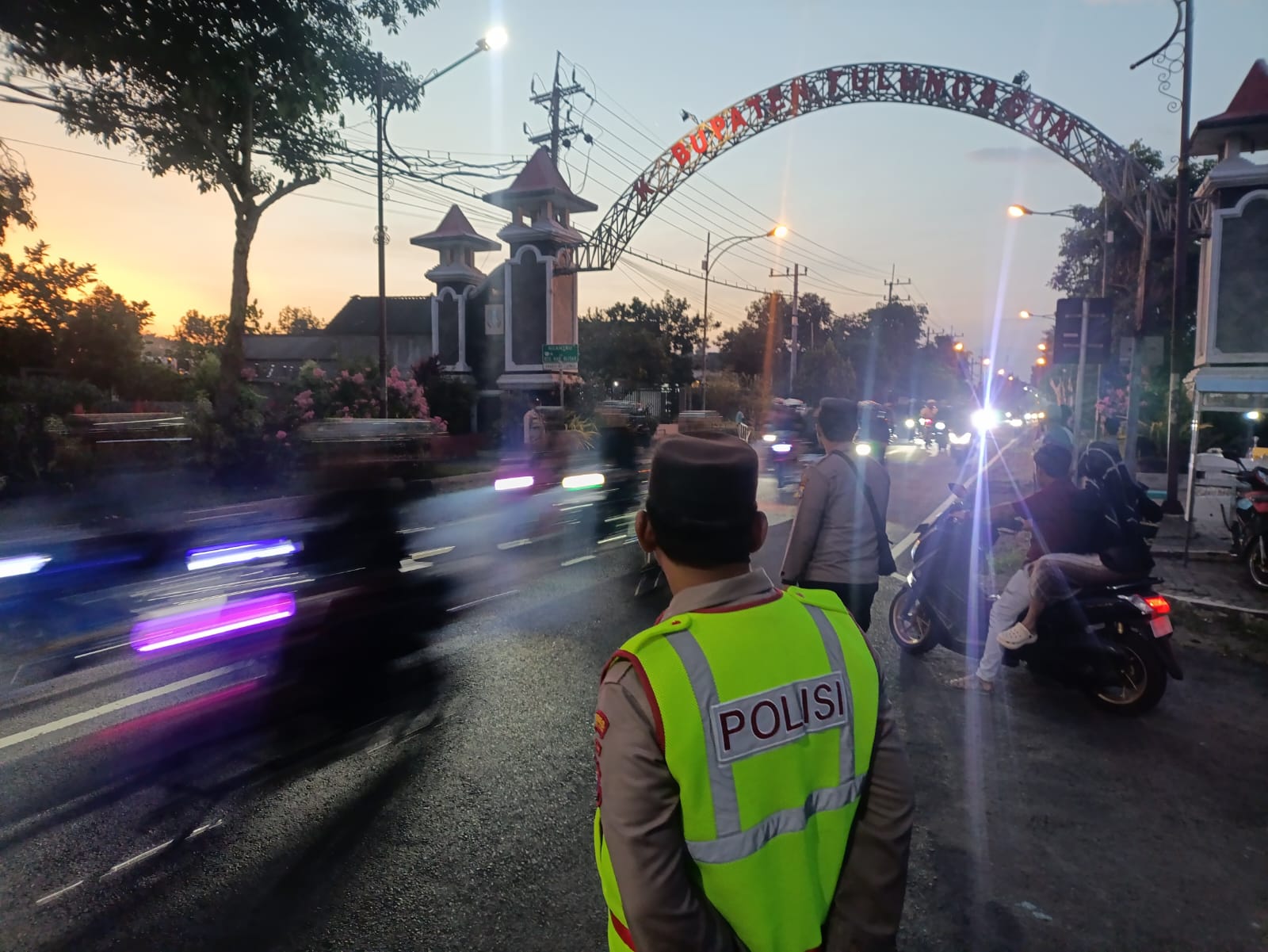 Kegiatan ini difokuskan pada antisipasi bubaran ST serta pengamanan jalur rombongan Gus Iqdam yang melintas di perbatasan wilayah hukum Polsek Wonodadi. Sejumlah personel ditempatkan di titik-titik strategis guna memantau arus kendaraan serta mengantisipasi potensi gangguan keamanan.