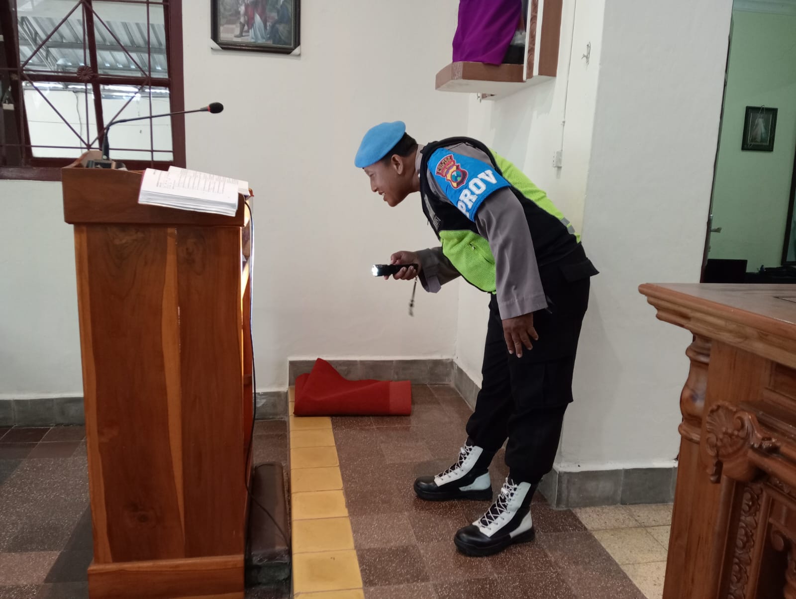 “Sterilisasi ini dilakukan dengan menyisir setiap ruang dan sudut gereja dengan menggunakan alat metal detector dan inspector mirror,” ujarnya.