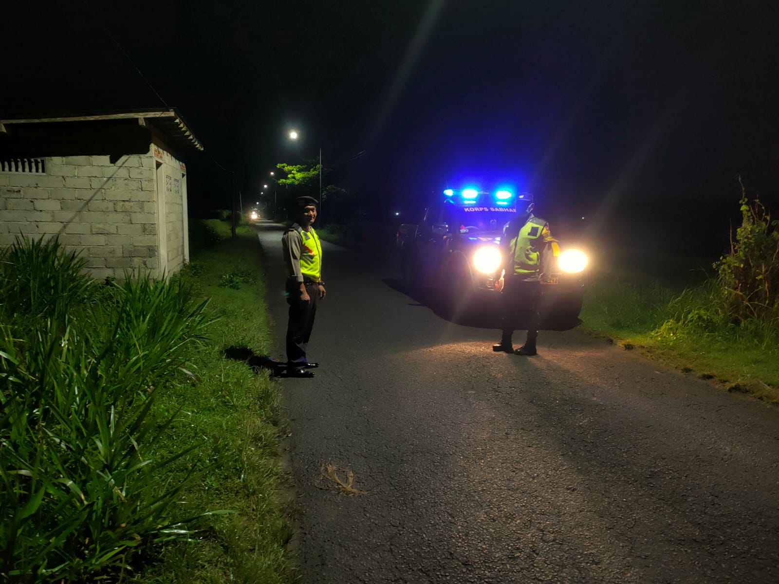 Personel Polsek Sanankulon Giat Patroli Bluelight Sepanjang Jalan Protokol Mencegah Tindakan Kriminalitas.
