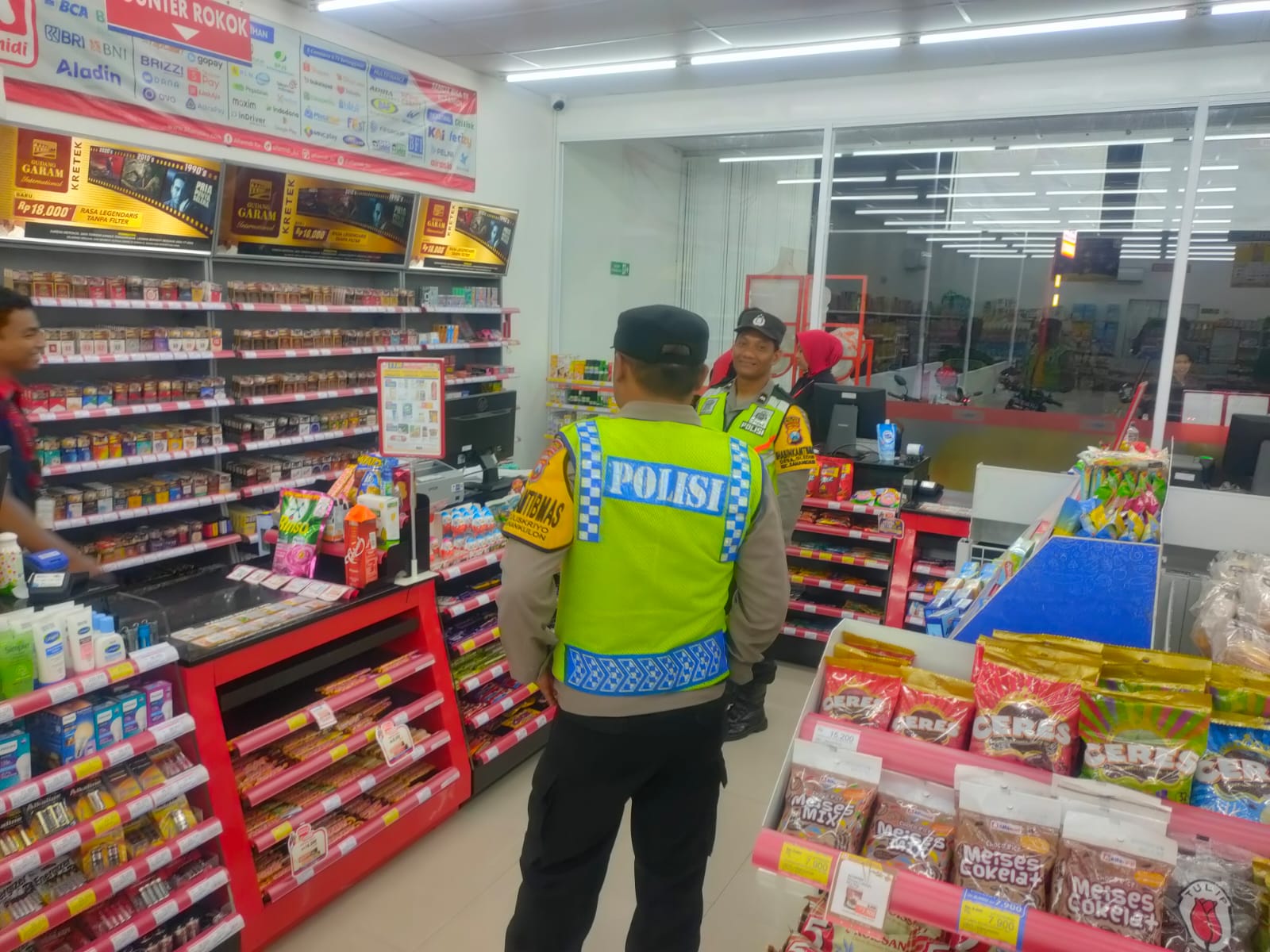 Polsek Sanankulon – Untuk menekan angka kejahatan yang terjadi di wilayah hukum Polsek Sanankulon, petugas Unit Sabhara melaksanakan kegiatan patroli dialogis kamtibmas yang dipimpin oleh KSPKT Aiptu Heru Setyo Budi beserta anggota dengan sasaran pusat pertokoan maupun obyek vital lainnya. Petugas juga berdialogis dengan karyawan minimarket sembari menyampaikan himbauan kamtibmas agar selalu waspada dan berhati hati saat melayani pembeli.