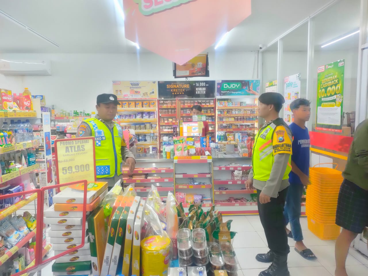 Polsek Sanankulon – Untuk menekan angka kejahatan yang terjadi di wilayah hukum Polsek Sanankulon, petugas Unit Sabhara melaksanakan kegiatan patroli dialogis kamtibmas yang dipimpin oleh KSPKT Aiptu Heru Setyo Budi beserta anggota dengan sasaran pusat pertokoan maupun obyek vital lainnya. Petugas juga berdialogis dengan karyawan minimarket sembari menyampaikan himbauan kamtibmas agar selalu waspada dan berhati hati saat melayani pembeli.