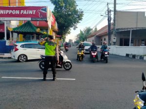 Polsek Sanankulon – Guna mewujudkan situasi keamanan keselamatan ketertiban kelancaran lalu lintas atau kamseltibcar lantas di pagi hari yang aman dan nyaman, personel Polsek Sanankulon melakukan tugas rutin berupa pengaturan arus lalulintas disepanjang Jalan Raya Blitar Kediri Desa Kalipucung. Kegiatan tersebut sebagai wujud atau upaya petugas untuk hadir di tengah masyarakat lebih awal saat masyarakat mengawali aktivitasnya.