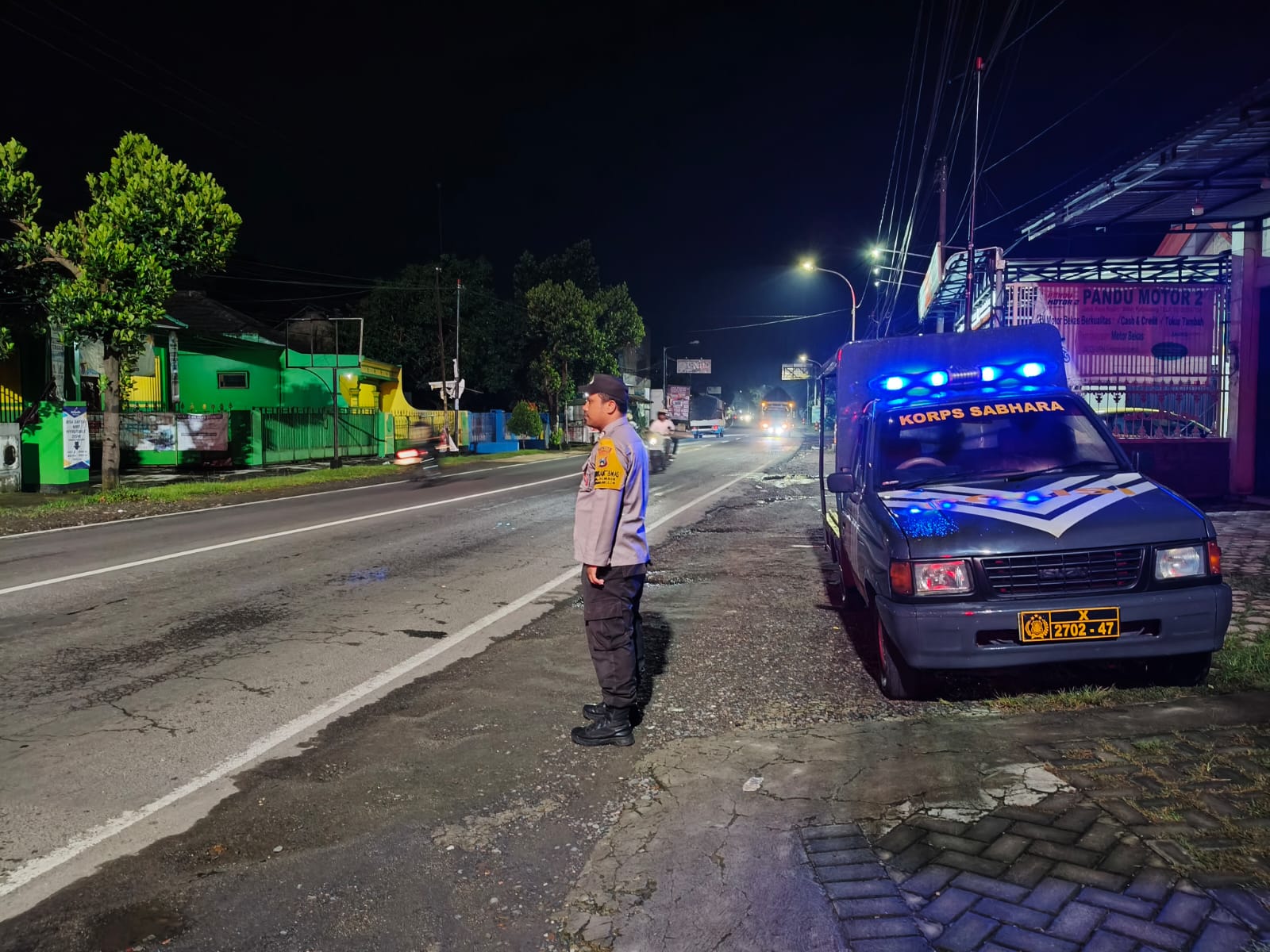 Personel Polsek Sanankulon Kegiatan Rutin Patroli Malam Hari Di Perumahan Warga Guna Menjaga Agar Situasi Tetap Aman.