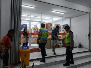 Polsek Sanankulon – Untuk menekan angka kejahatan yang terjadi di wilayah hukum Polsek Sanankulon, petugas Unit Sabhara melaksanakan kegiatan patroli dialogis kamtibmas yang dipimpin oleh KSPKT Aiptu Heru Setyo Budi beserta anggota dengan sasaran pusat pertokoan maupun obyek vital lainnya. Petugas juga berdialogis dengan karyawan minimarket sembari menyampaikan himbauan kamtibmas agar selalu waspada dan berhati hati saat melayani pembeli.